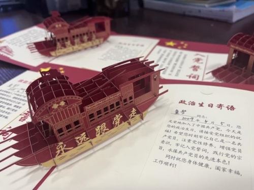 活动第一项,由公司党总支专职组织员刘福禄为本次过“政治生日”的5位党员赠送“政治生日”贺卡。贺卡上不仅清晰记录着每位党员的入党时间,还印有入党誓词和温馨的祝福语,为每一名党员留下一份深刻的“政治生日”珍贵记忆。
