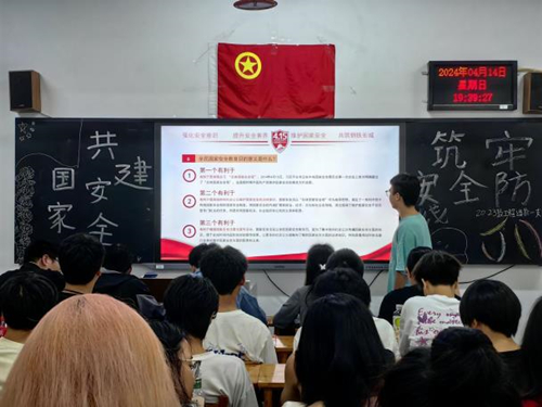 各团支部主讲人通过图文结合的形式,就“如何贯彻国家安全意识”“正确维护国家主权”“坚定树立国防理念”等三个方面进行了讲解,让同学们全方位、多角度地了解总体国家安全观,明确人类现代文明的深厚底蕴。通过相关宣传视频和典型案例直观地为同学们展现了维护国家安全的重要性,引导同学们要树立依法防范危害国家安全行为的意识,明确国家安全人人有责,国家安全一切为人民,一切靠人民的国防观念,引导同学们时刻牢记维护国家安全的使命,从小事做起,贡献自己的绵薄之力。