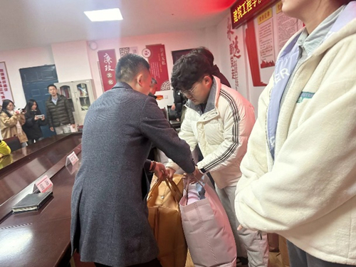 活动现场,蒲书记和曾经理为21名家庭经济困难员工发放了御寒爱心物资。随后召开了座谈会,了解同学们在校期间学习和生活等方面的情况。