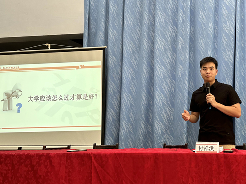 师生见面会结束后,学办专职辅导员付祥洪老师为同学们开展了“学籍管理教育、校史校情教育、校风校纪教育”,帮助同学们了解大学的学制学分以做好学习规划,了解校史校情激发同学们的认同感和归属感,强化校风校纪促进同学们良好习惯的养成。