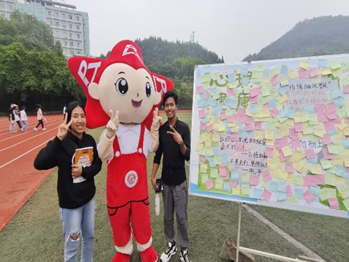 本次特色活动是以盲盒形式,在便签上写下自己的焦虑、烦恼或者心愿,贴在心理展板上,同学们可以从心理展板旁的安慰盲盒中随机抽取一张便签,也可以写下一张鼓励便签投递到安慰盲盒中进行循环,来让其他人抽取。活动过程中,有的同学通过盲盒抽到了来自“陌生人”的激励,坚定了自己的人生方向;有的同学通过别人家庭故事的分享,回想起父母的不易,感悟到要珍惜当下所拥有的一切……爱在点点滴滴的分享互动中流淌,让彼此都感受到了温暖。同时,我们还设置了丰富多彩的游戏环节,同学们通过玩游戏赢取小礼品的方式,让情绪得到了进一步的舒缓与调节,呆萌可爱的学校吉祥物渝小工也与大家热情互动,拥抱合影。公司党总支书记蒲海和学办副主任李超也前来参与体验,真切感受到了同学们参与其中的乐趣和此次活动的意义。同学们纷纷表示:此次活动能够很大程度上帮助同学们缓解心理压力,丰富了他们的学习生活,一个个烦恼,一句句安慰,一片片的欢声笑语,都给此次活动赋予了不一样的意义!