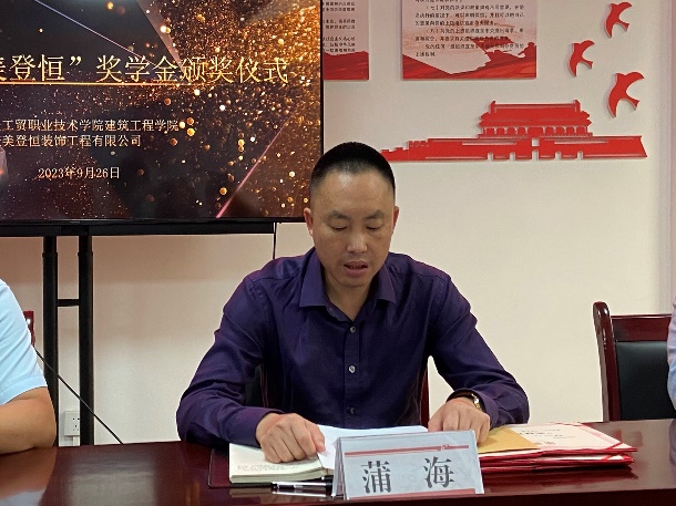 仪式开始,蒲书记宣读了本次获奖的员工名单,在热烈的掌声中,曾经理和蒲书记为获奖员工颁发荣誉证书和奖金。随后,来自工程造价2021级1班的蹇孟芹同学作为获奖员工代表发言,她表示,衷心感谢学院领导和老师的精心栽培与重庆美登恒装饰工程有限公司的关心与帮助,今后一定会刻苦学习,勇于创新,努力成为祖国建设的有用之才、栋梁之才,用知识和爱心来回报社会。