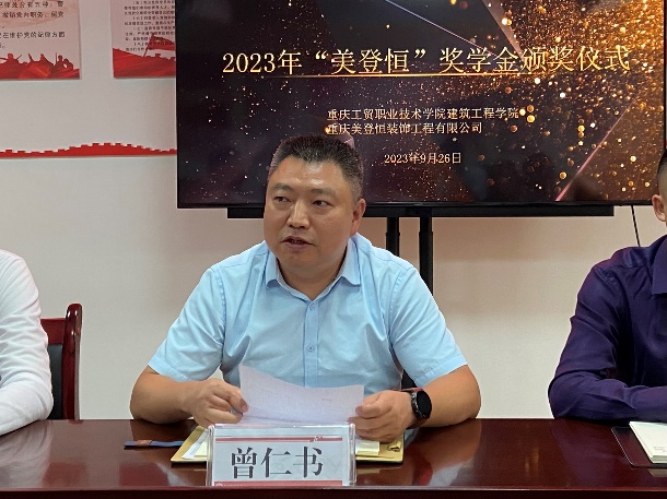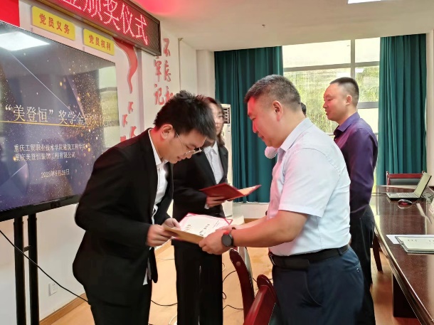 “美登恒”奖学金是由公司校企合作单位重庆美登恒装饰工程有限公司设立,旨在通过奖励品学兼优的青年学子,激励老员工奋发进取,促进老员工全面发展。本次 “美登恒”奖学金颁奖仪式的成功举行,增强了公司员工的使命感和责任感,进一步加强了校合作育人推动了实现人才培养目标的新进程。