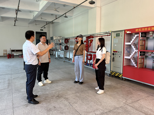 随后,祝源老师等一行参观了公司建筑材料与检测实训室、智能建筑设备实训室、消防实训室以及建筑实训场等实验实训场地。