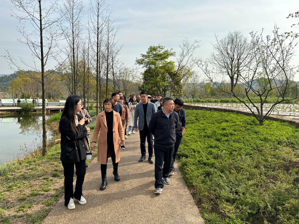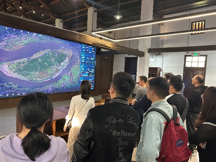 随后,全体教师一起前往广阳岛,实地观摩了岛内多个生态修复工程,感受“长江风景眼,重庆生态岛”的美景。在广阳营内,广联达业务专家为大家详细介绍了智慧广阳岛项目的建设情况。她讲到,该项目立足广阳岛生态本底,创新建设了EIM 数字孪生平台,真实还原了广阳岛的原始风貌,同时搭建了生态物联设施、5G 通讯网络等智能化基础设施,实时感知全岛生态运行态势,以此构建智慧生态、智慧建造、智慧风景、智慧管理四大智慧应用。
